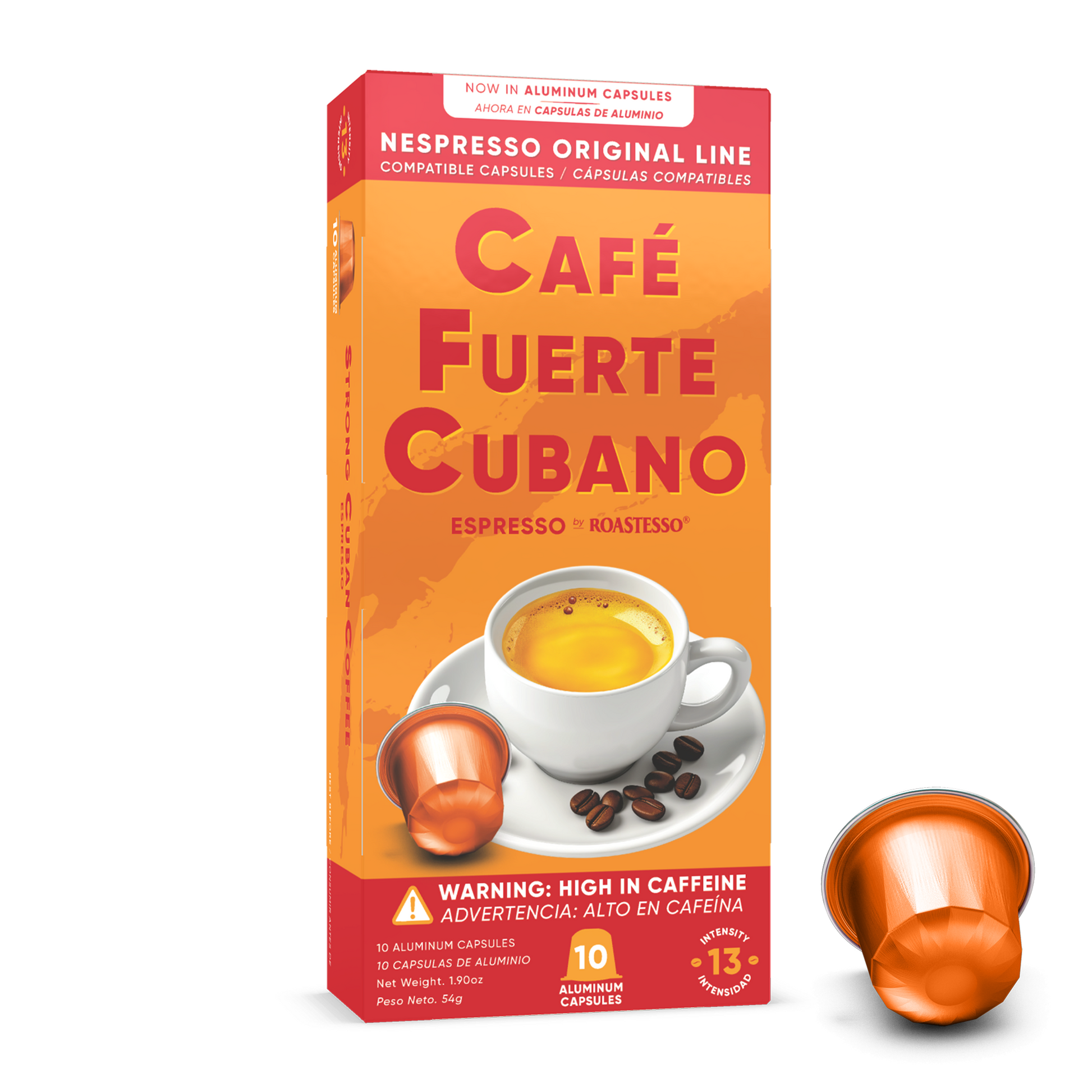 Experience the intense flavor and robust strength of authentic Cuban-style espresso with our 'Café Fuerte Cubano' capsules, compatible with Nespresso machines. Renowned for its powerful, sweet taste, our Cuban Coffee delivers a strong shot of caffeine that feels like pure electricity coursing through your veins. Crafted for those who relish a potent and invigorating espresso experience, these capsules are perfect for a truly strong and memorable cafecito.